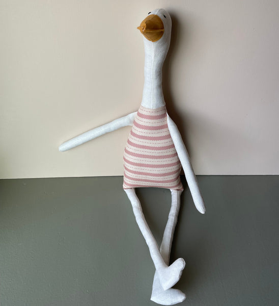 22" Cream Goose with Silly Stripe print belly. Hand stitched face.