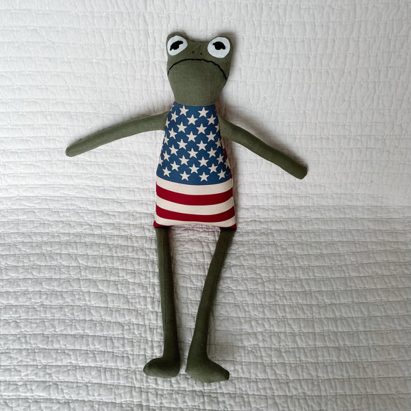 18” Animal with USA Flag inspired print belly. Hand stitched face.