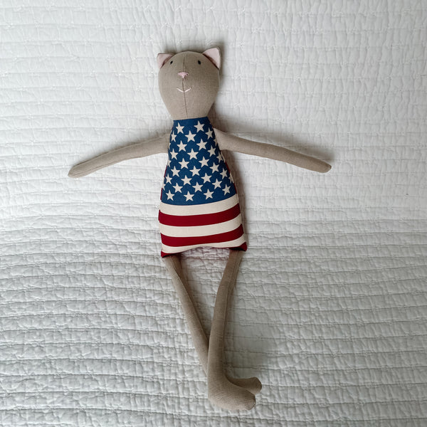 18” Animal with USA Flag inspired print belly. Hand stitched face.